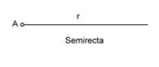Es una recta limitada únicamente por un extremo, y se nombra mediante el punto origen y el nombre de la recta (semirrecta A-r).