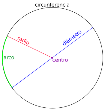 Una circunferencia es una línea curva, cerrada y plana, en la que todos sus puntos están a una misma distancia (llamada radio) de un punto central llamado centro. La circunferencia está definido por el centro y el radio o diámetro (doble del radio).