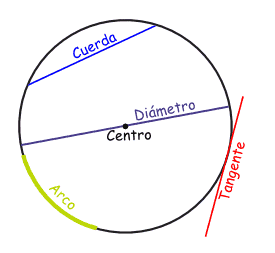 - Una línea que va de un punto de la circunferencia a otro se llama cuerda.