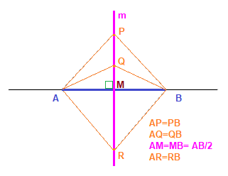 Es el LG de los puntos que equidistan de dos puntos A y B. Es la perpendicular al segmento AB por su punto medio y por lo tanto divide al segmento AB a la mitad.