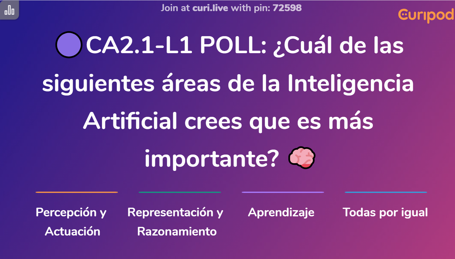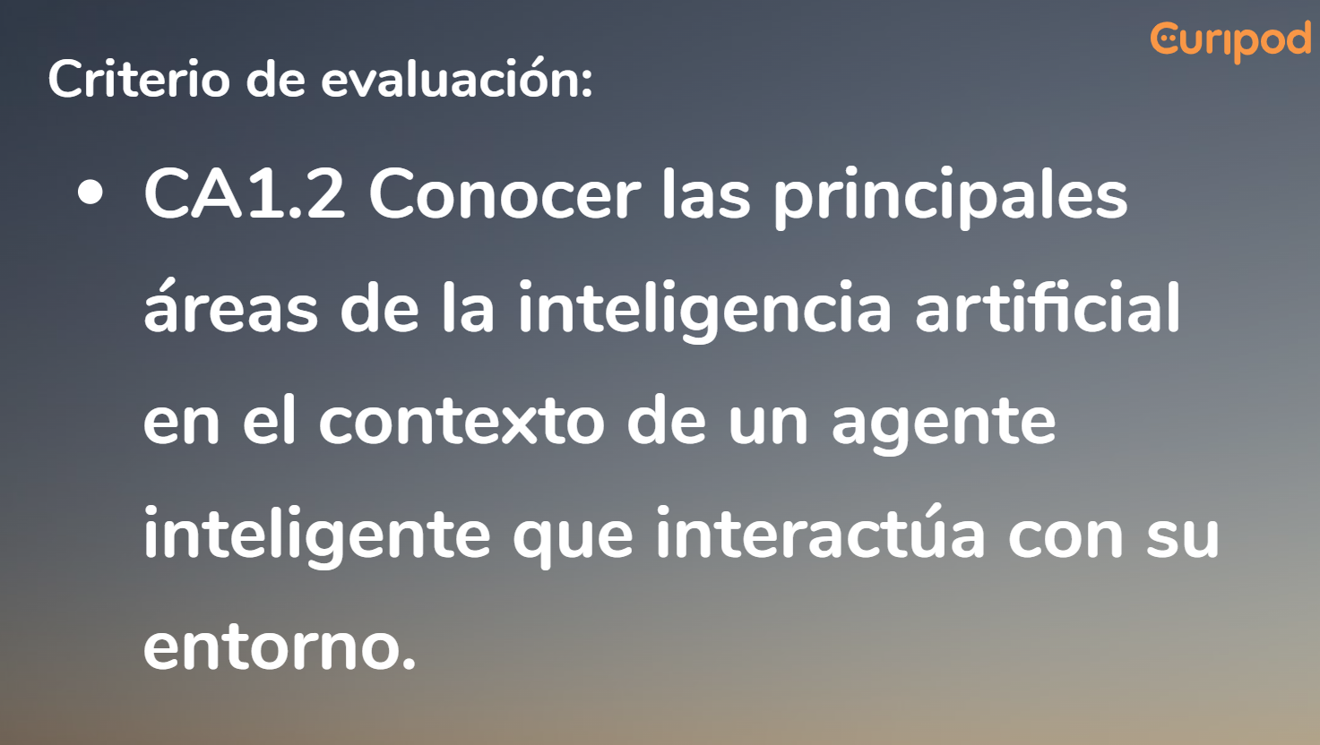 ▪ CA1.2. Conocer las principales áreas de la inteligencia artificial en el contexto de un agente inteligente que interactúa con su entorno.