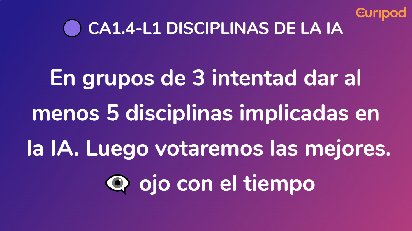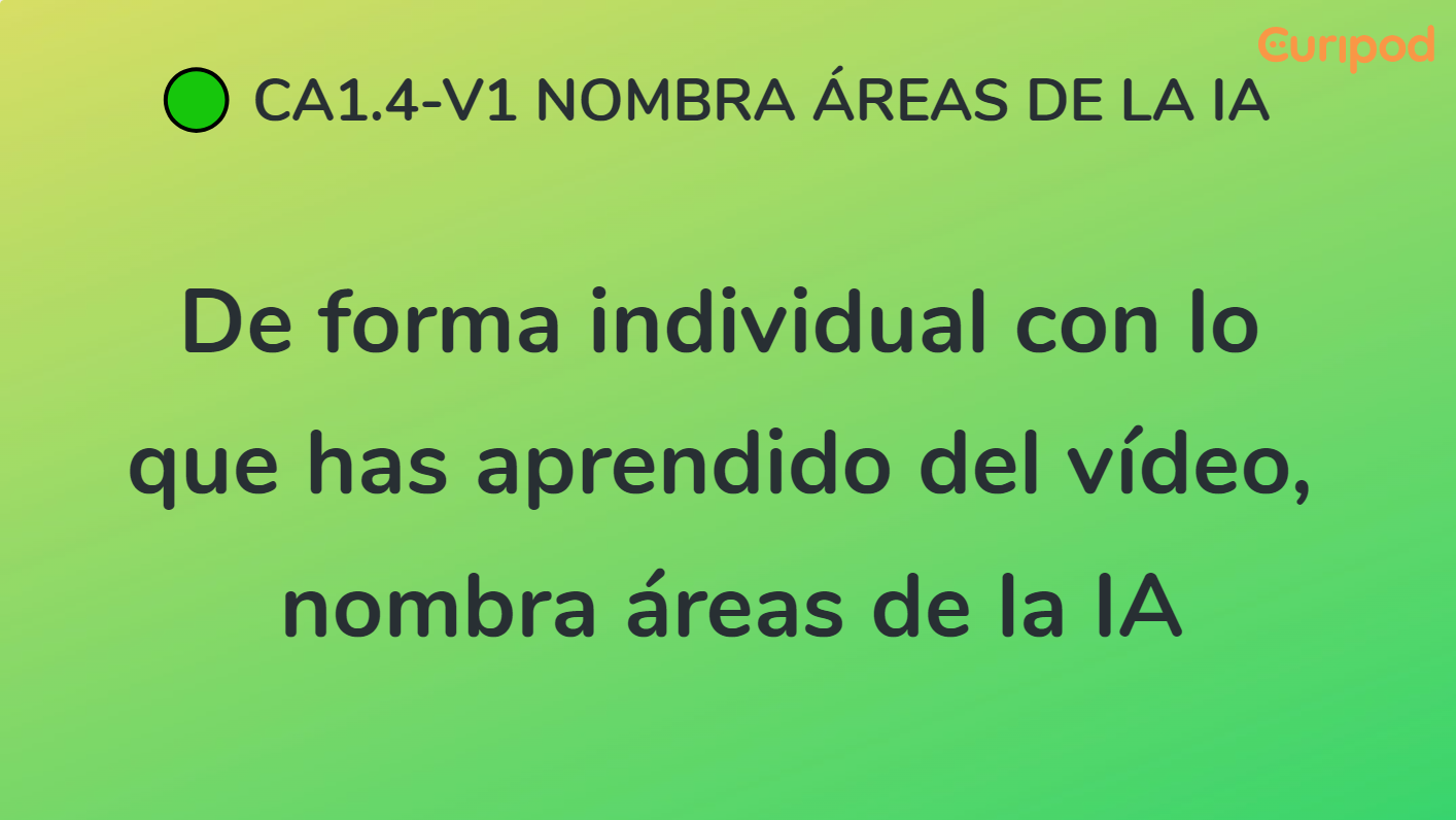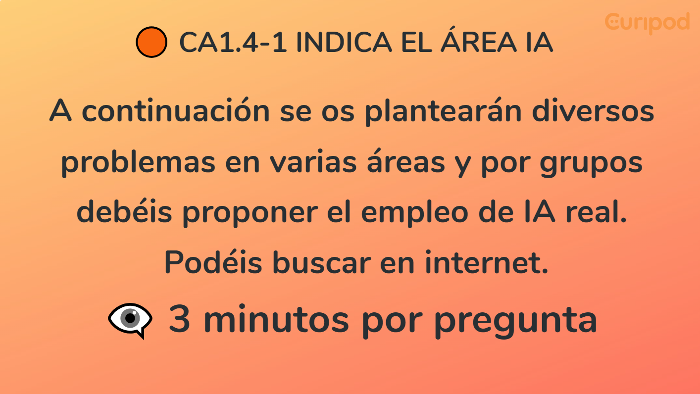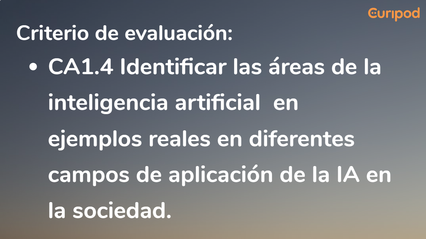 ▪ CA1.4. Identificar los ámbitos de la inteligencia artificial en ejemplos reales en diferentes campos de aplicación de la inteligencia artificial en la sociedad.