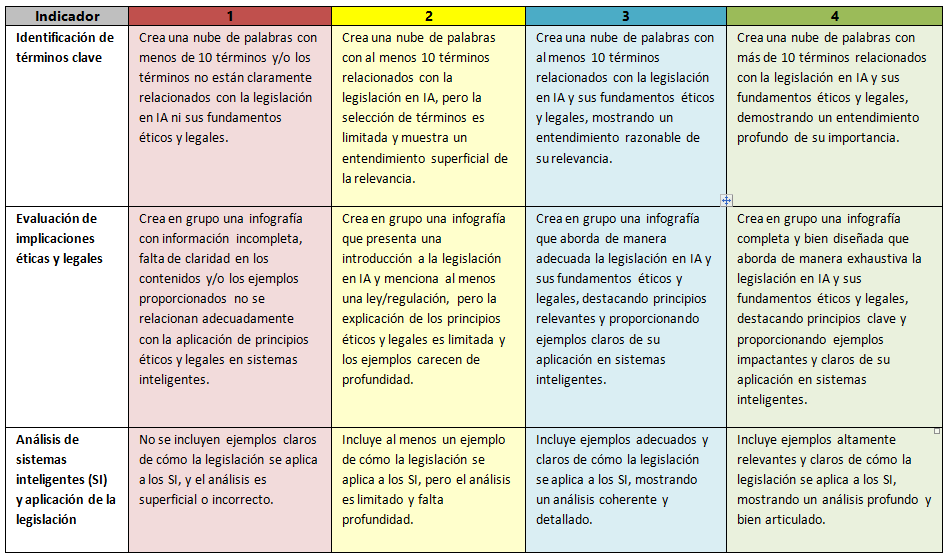 ▪ CA2.5. Reconocer la relevancia de la legislación sobre inteligencia artificial y su fundamento, aplicando principios éticos y legales durante el análisis de sistemas inteligentes.