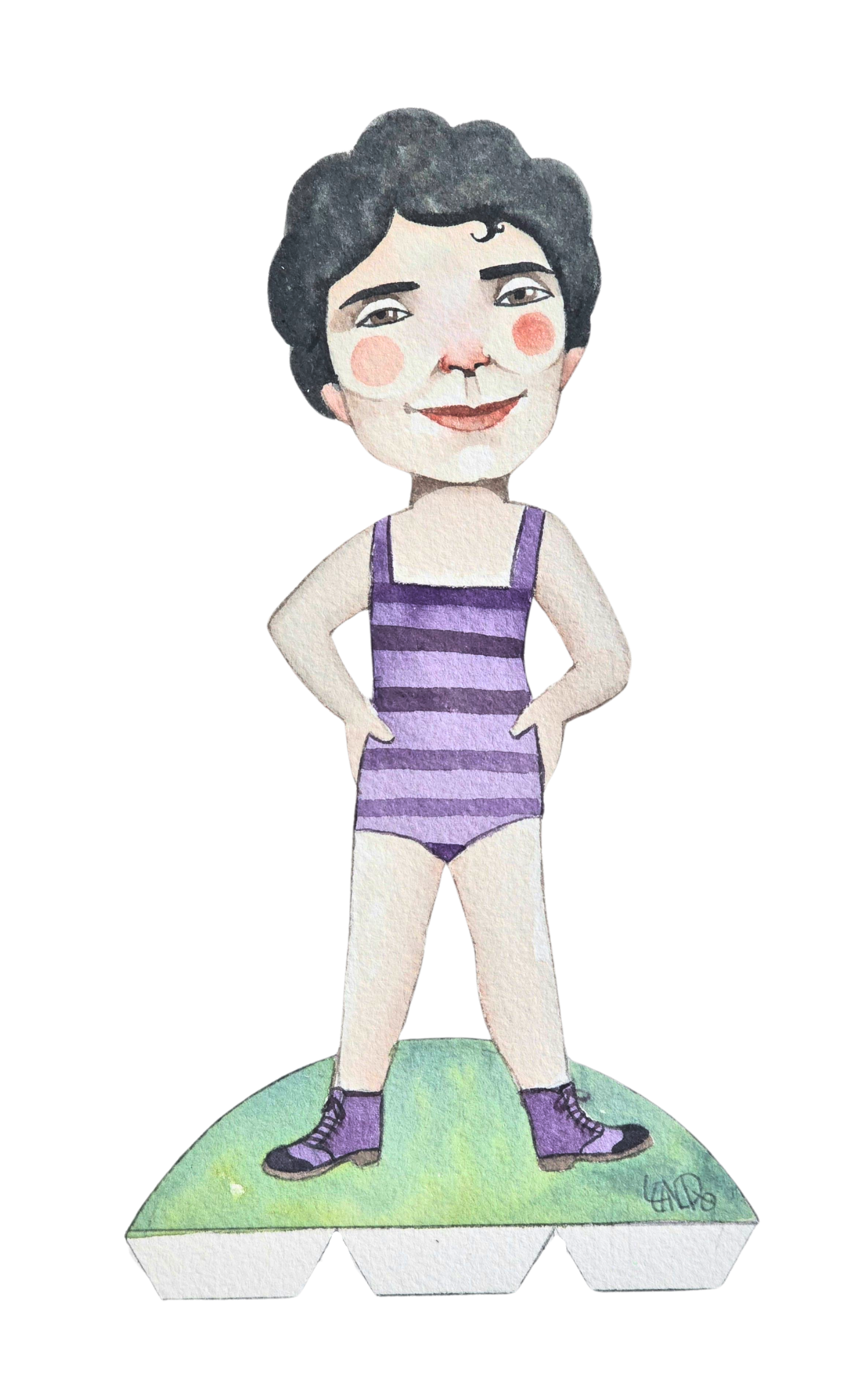 - Recorta coidadosamente a Rosalía e as prendas, deixando pestanas para poder vestila.